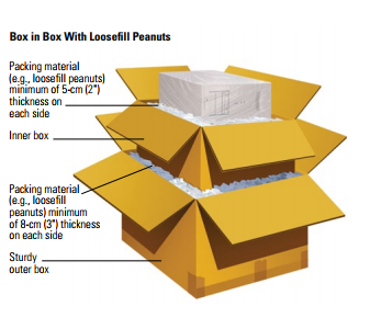 • Use a second box that is at least 15 cm (6") longer, wider, and deeper than the inner box.