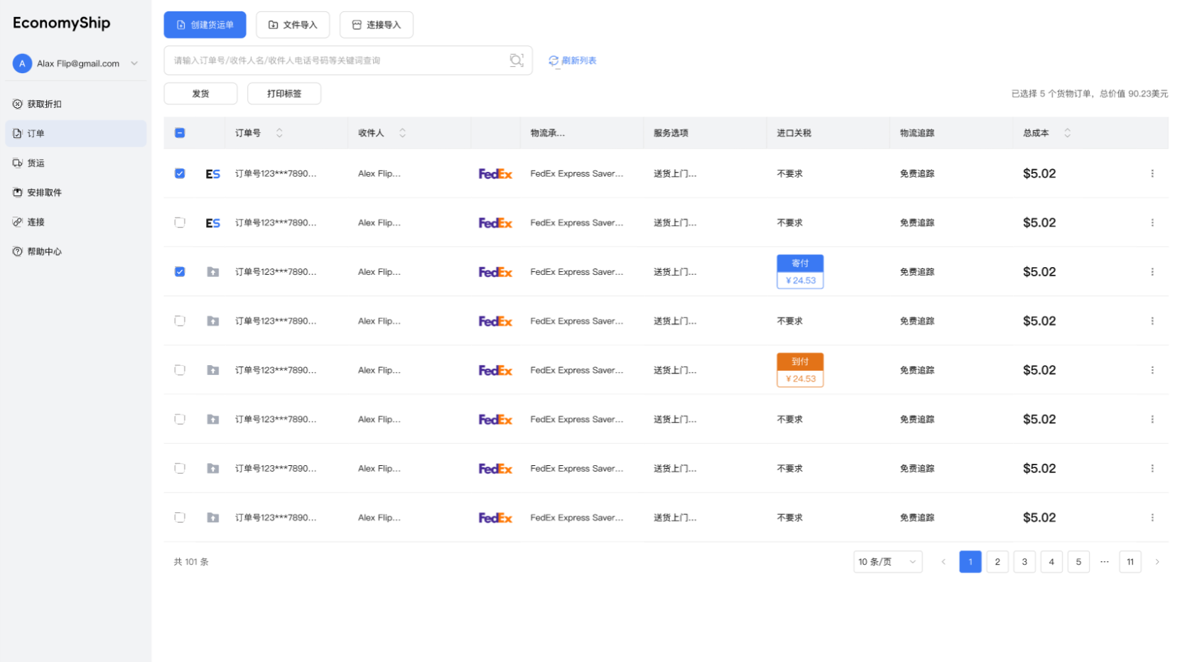 Connect to e-commerce platforms to automatically import orders, so that you can quickly purchase labels and ship, improve efficiency and save time.